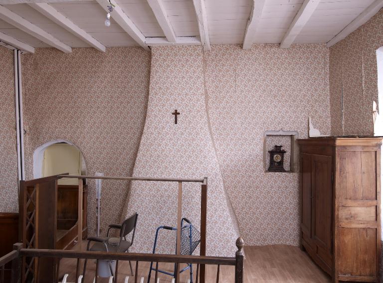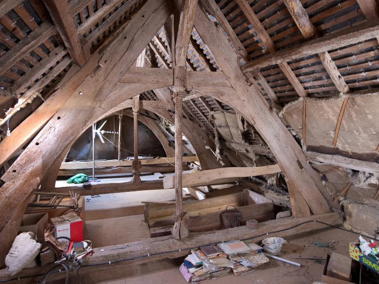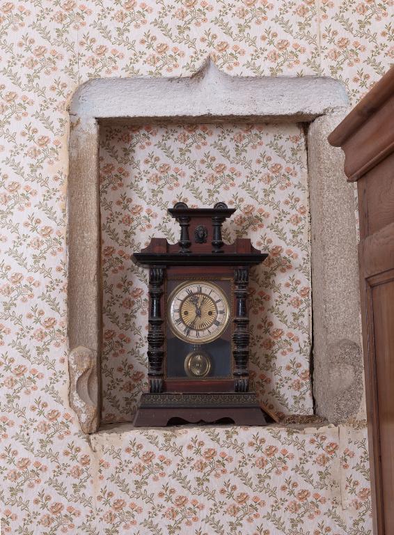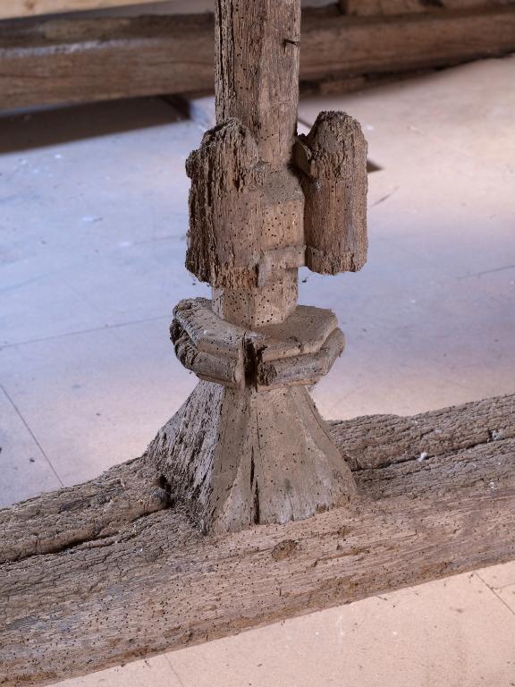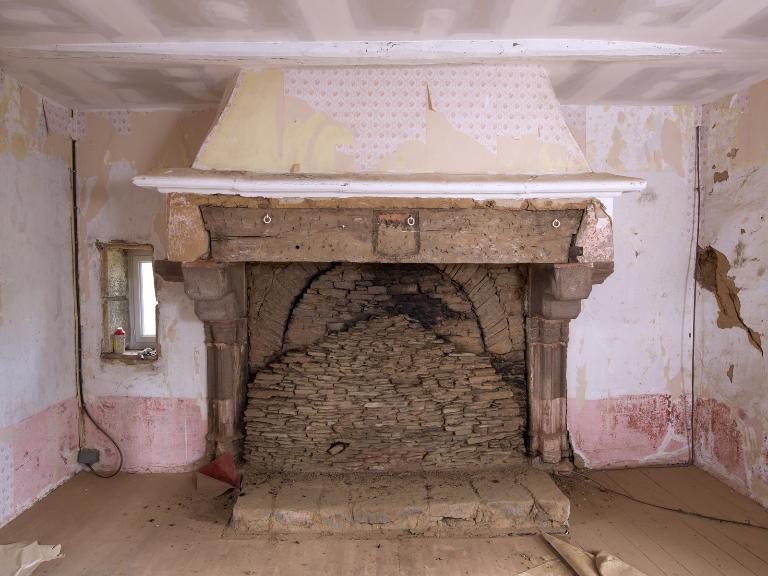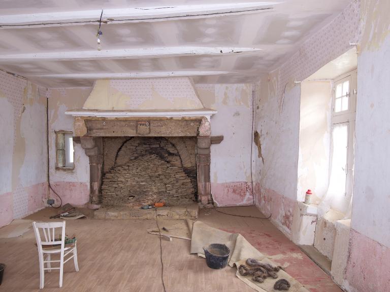 Les pièces du rez-de-chaussée et de l'étage à gauche, qui correspondent à la zone moyenne du logis, probablement une salle surmontée d'une autre ont conservé leurs anciennes cheminées à jambages moulurées ou colonnettes, chapiteaux à feuillage consoles et tablettes latérales. La charpente à liens courbes et poinçon polygonal (pièce centrale verticale reliant l'entrait et les arbalétriers) qui surmontait à l'origine directement l'étage est encore visible dans le grenier actuel. Cette dernières - aux poinçons élancés est de grande qualité, le poinçon du milieu de la salle haute sous-charpente est ainsi orné de quatre tours.