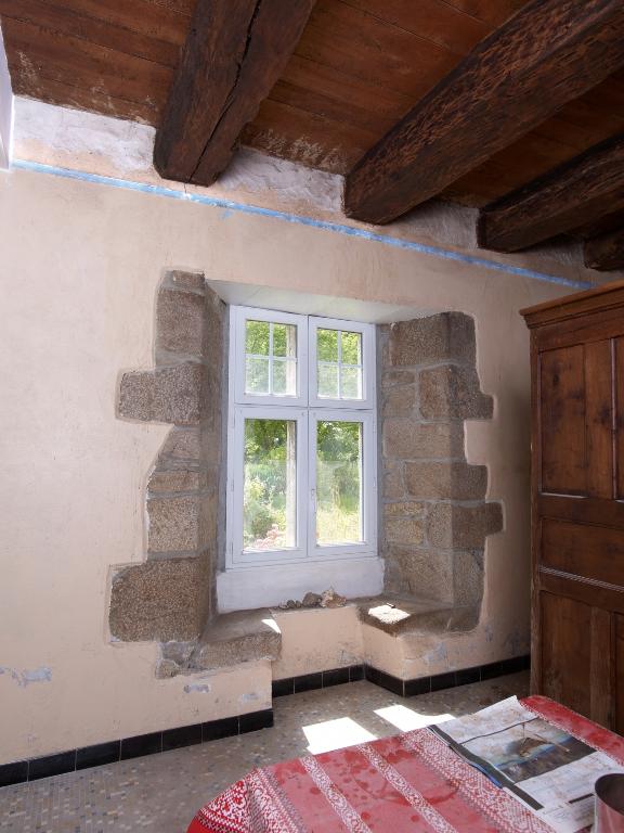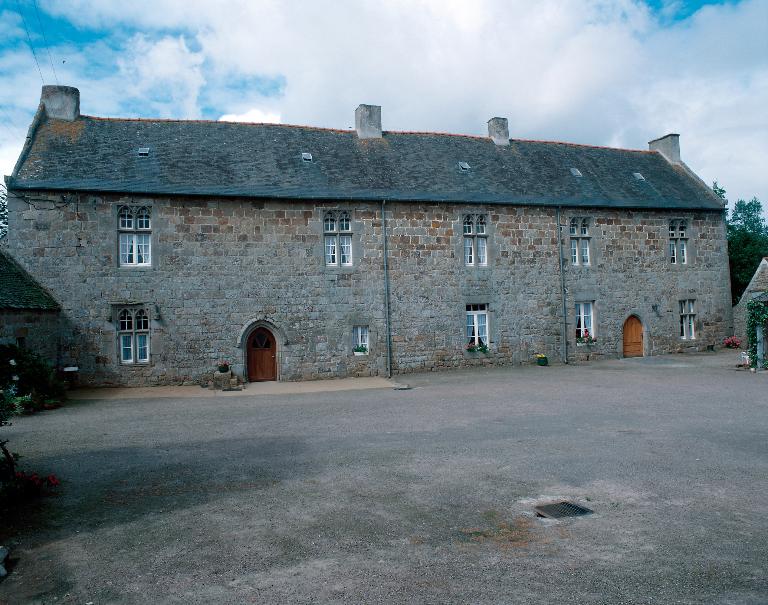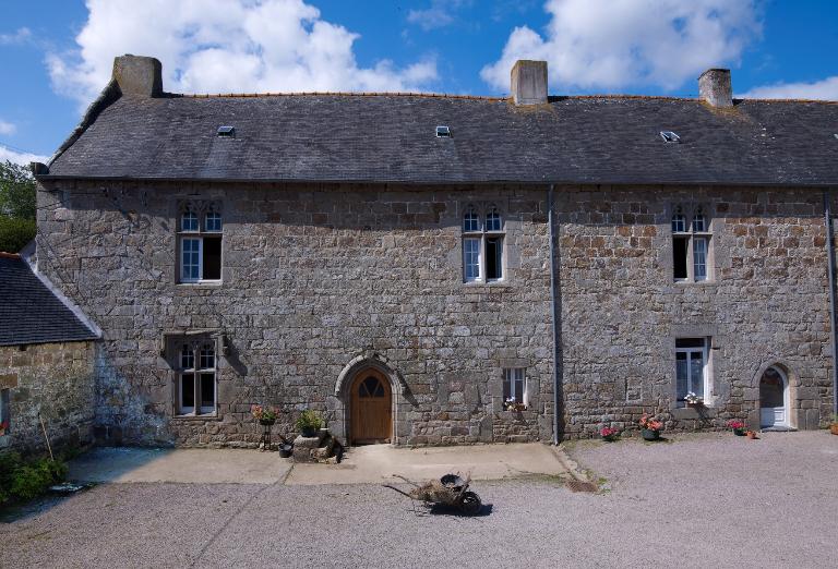 Le grand logis à étage a conservé sa composition en longueur d'origine de la première moitié du 15e siècle qui rappelle celle de Kerdeozer à Pleudaniel (22). Chacune des cinq pièces du rez-de-chaussée, deux salles aux extrémités encadrant des pièces annexes et une pièce médiane sans feu, était pourvue d'un accès direct depuis la cour. La porte de la pièce médiane a été murée et flanquée sur sa gauche par une fenêtre au 19e siècle, qui remplace un four également muré. Malgré ces remaniements, cette façade se caractérise par la qualité de ces percements anciens en particulier la fenêtre de la salle de gauche au rez-de-chaussée, seule à être pourvue d'un larmier à retours sur consoles anthropomorphes ainsi que les cinq baies de l'étage ornés d'anses en têtes pointues trilobées qui rappellent les baies du manoir de Keradraou à Troguéry (22).