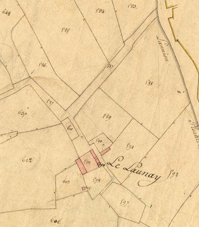 Orienté vers le levant et long de trente mètres, le manoir du Launay impressionne par son remarquable état de conservation. Il comporte des éléments stylistiques datables de la première moitié du 15e siècle : fenêtres gothiques ornées d'arcs trilobés jumelés et portes basses en arc brisé. A l'intérieur du manoir, la charpente de type armoricaine et vieille d'environ 600 ans est restée intacte.