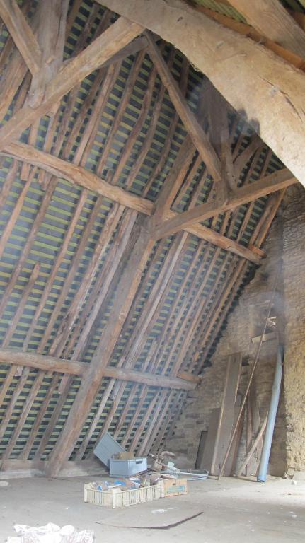 Ancien logis à trois pièces au sol déclassé en dépendances. La partie à étage conserve en rez-de-chaussée un escalier en vis en charpente situé dans un angle arrondi immédiatement à gauche de l'entrée. Actuellement une seule cheminée est conservée dans la salle basse. La chambre qui était éclairée par deux fenêtres l'une sur la cour et l'autre arrière sur la campagne, possède un évier pour tout élément de confort.