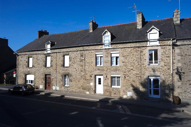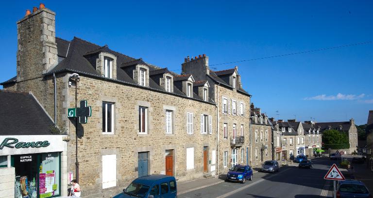 Les délibérations du Conseil Municipal dépouillées et publiées par Thérèse Delavaut-Lecoq indiquent que dès 1838, le maire expose sa volonté d'acquérir plusieurs parcelles pour construire une nouvelle église, mais aussi un presbytère et une mairie école. Une délibération du conseil municipal du 6 novembre 1842 précise le contour du nouveau bourg. « Le moment approche où l'on va s'occuper de la construction de la nouvelle église, qu'un bourg conséquent va s'établir sur le tertre où l'on va construire l'église ; quoique le projet de construction d'un pont dans la direction du mur Saint-Sauveur sur le Montenvais ne paraisse pas tout à fait en faveur du nouveau bourg, il sera facile à la commune d'y faire arriver les voyageurs avec peu de frais.... ». le maire insiste également sur l'urgence de créer un alignement de rue afin de palier à toutes protestations des futurs propriétaires et ainsi créer une homogénéité linéaire du « village rue ». A partir de la construction de la nouvelle église en 1844 le bâti s'implante progressivement sans épaisseur le long de la voie, comme en témoigne les différentes réalisations : logis daté 1852, mairie-école du milieu du 19e siècle, presbytère de 1872 par Charles Aubry. Quelques ilots à l'alignement de la rue reprennent l'ordonnancement régulier des façades du 18e siècle, travées symétriques ponctuées par des lucarnes de granite dont les moulures incurvées sont dites aussi « en chapeau de gendarme ». La plupart de ces maisons ont perdu leur enduit de chaux.
