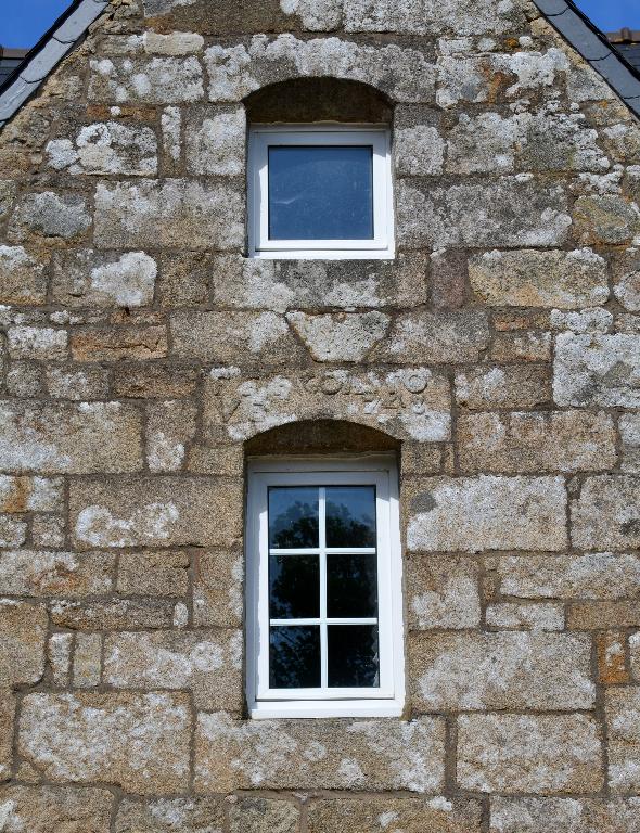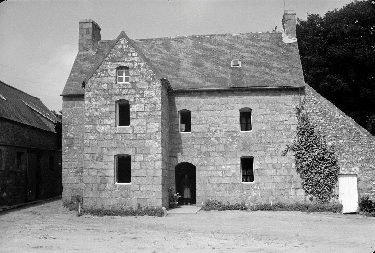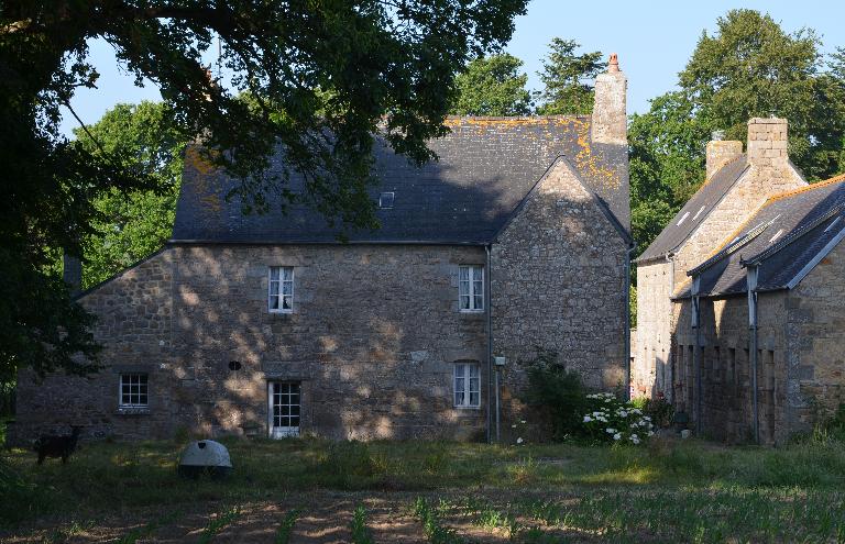 Orientée vers le sud et accosté de dépendances (étables), le second logis est daté de 1828 (millésime) et porte l'inscription suivante : "F:F:P: Y:AUREGAN / _ M:Y: LEBOURDON/NEC".