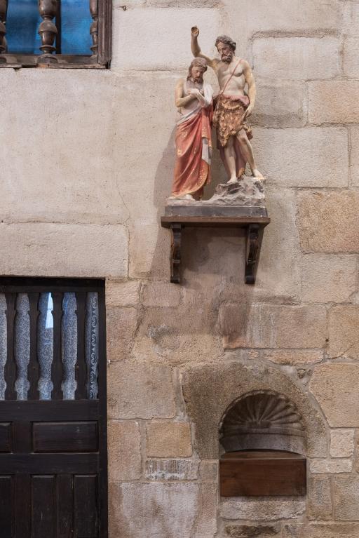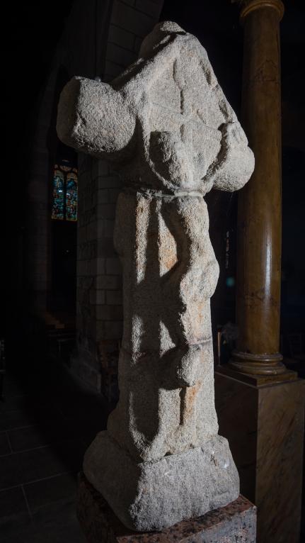 Un artisan en maçonnerie ayant besoin d'eau pour un chantier charge ses employés d'aller récurer la fontaine Ruellan du champ des Rochettes. Ceux-ci découvrent trois morceaux de granite taillés provenant d'une croix brisée ancienne. Selon l'abbé Blanchet, les morceaux sont réunis et réinstallés sur leur socle au sommet de la fontaine. Sur une face, une représentation de la Vierge à l'Enfant et sur l'autre, le Christ en croix. Quelques semaines plus tard, un simple d'esprit, Gilles Portier la jette à nouveau dans la fontaine. Des habitants tentent de retrouver les morceaux, en vain.