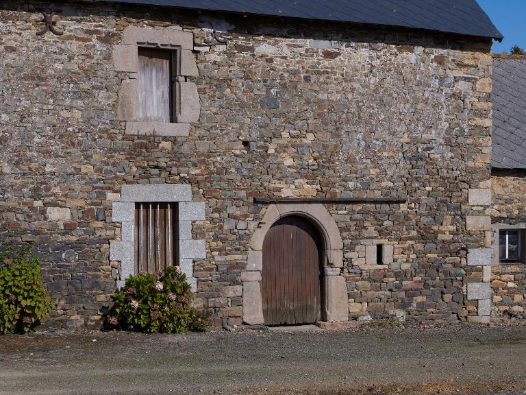 Grande ferme concertée composée d'un logis et de dépendances disposées autour d'une cour, au nord. Un jardin clos de mur, avec portail d'accès en pierre, est aménagé au sud du logis. Celui-ci présente un plan double en profondeur, à double orientation nord-sud avec élévation à cinq travées. Deux pavillons latéraux couverts d'un toit à croupe encadrent le logis construit en pierre de taille de schiste avec encadrements de baies et chaîne d'angle en granite. Le vestibule d'entrée est entièrement lambrissé, il dessert le salon et la salle à manger, situés en vis à vis, ainsi que la cuisine qu'isole un sas de séparation dans l'axe de la porte d'entrée. L'escalier tournant en charpente dessert les chambres de l'étage.