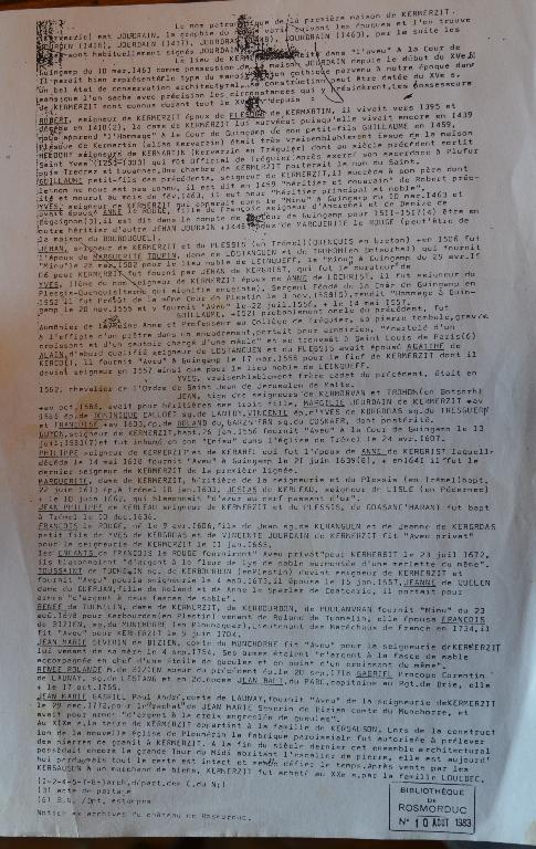 Archives de la Bibliothèque de Rosmorduc (collection particulière).