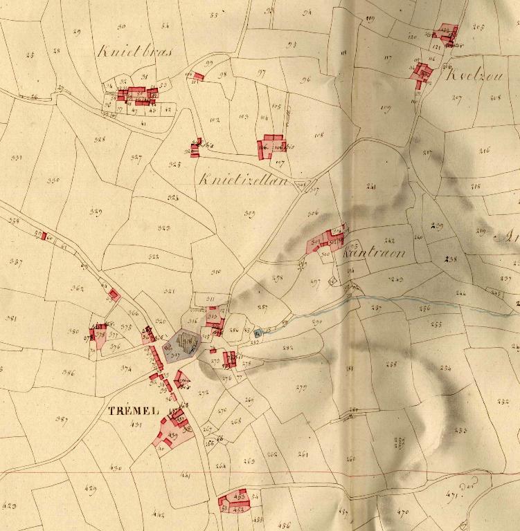 Développé en marge, le cadastre de 1848 du bourg de Trémel est plus précis que celui de 1814. Plusieurs bâtiments ont été construits entre 1814 et 1848 à l'est de la route sur des terres agricoles. De petits chemins sont qualifiés de venelles. L'habitat s'est développé autour de l'église tréviale, des carrefours et le long de la principale voie de communication. En raison de la prépondérance des activités agricoles dans l’économie traditionnelle, l'habitat groupé est peu développé.