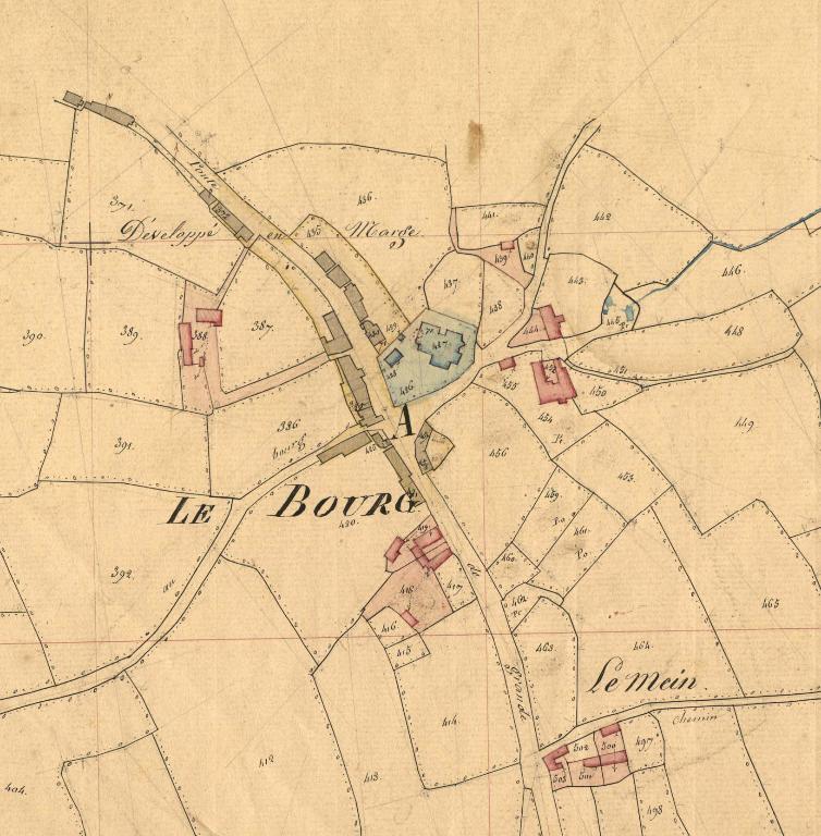 La place de l’Église marquait autrefois le centre du bourg qui concentrait les activités commerciales, religieuses et administratives. Le premier quart du 20e siècle marque la construction de nouvelles maisons aux entrées du bourg et l'édification d'une nouvelle école communale. Des constructions des années 1930-1960 (habitats et commerces) ont également rempli les dents creuses. Dans les années 1970, le cimetière a été repoussé - toujours dans l'enclos - mais au nord de l'église.
