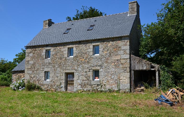 - l’ensoleillement maximum avec une orientation générale des logis vers le sud. Dans le Trégor, les logis de ferme sont le plus souvent orientés vers le sud-sud-est ou le sud-est. Les anciens manoirs, pour des raisons symboliques liées à l’expression du pouvoir seigneurial, contredisent parfois cette logique avec une orientation principale vers l’est ou le nord comme pour les deux manoirs de Kermerzit dont l'entrée monumentale se prolonge par une longue allée cavalière. A Zan Logot, l'ancien logis à étage daté 1588 est orienté vers le sud-est : l'accès à l’étage par l’escalier extérieur marque la volonté de dissocier l’étage du rez-de-chaussée par une distribution indépendante. Ce logis témoigne de l'aisance de son commanditaire. Aucun symbole liturgique et social (statut clérical ?) ne vient malheureusement éclairer la qualité du propriétaire. S'agissait-il d'une maison de prêtre ? Si la très grande majorité des logis de ferme est orientée vers le sud, certains logis dérogent à la règle.