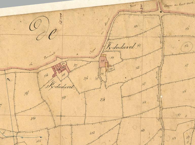 Cet ensemble bâti ancien, à la fois résidence d'un prêtre ou d'un ecclésiastique au 17e siècle et exploitation agricole, est situé entre Trémel et Plouégat-Guérand. Établi à 88 mètres au-dessus du niveau de la mer - non loin du Douron situé à l'ouest - il est alimenté en eau par un puits maçonné. Le site est accessible depuis le nord par le chemin du moulin à eau de Perceval à Croas an Hent Vert. Le toponyme "K[er]dudavel" est mentionné sur les cadastres de 1814 et 1848.