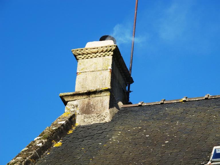 La maison est en pierre de taille et couverte en ardoise. De plan massé, elle possède un étage carré à une pièce par niveau ; au rez-de-chaussée, la cheminée en pierre avec consoles en quart-de-rond est engagée dans le pignon est. Dans le mur postérieur, une porte haute en plein cintre à clef saillante, bouchée, indique la présence ancienne d'un escalier extérieur, en pierre d'après information orale, menant à la chambre haute ; celle-ci cependant ne comporte pas de cheminée. Dans le pignon est, un oculus ainsi qu'une ouverture de tir remployée éclairent le comble. Souches de cheminée à denticules.