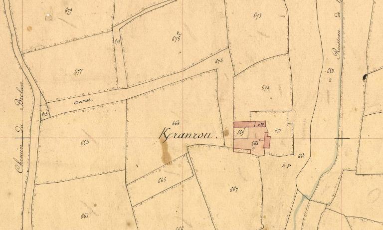 Le manoir de Keranroux appartenait toujours à la famille Le Pelletier de Rosanbo au 20e siècle : il avait été déclassé en ferme comme on peut le voir sur les photographies de 1969.