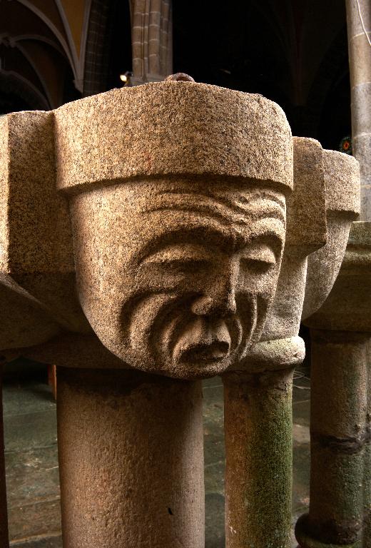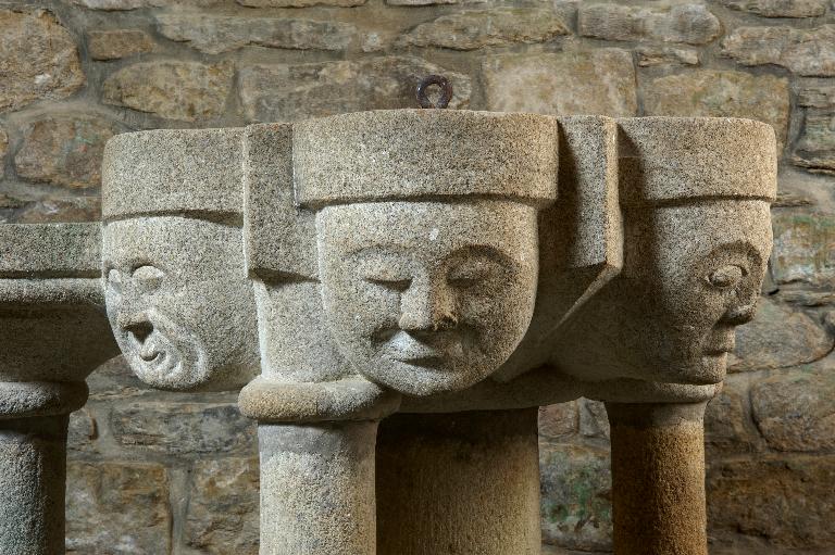 L'église possède aussi un baptistère médiéval, dont les cuves, reposant sur des colonnes, sont sculptées d'énigmatiques visages d'une grande expressivité.