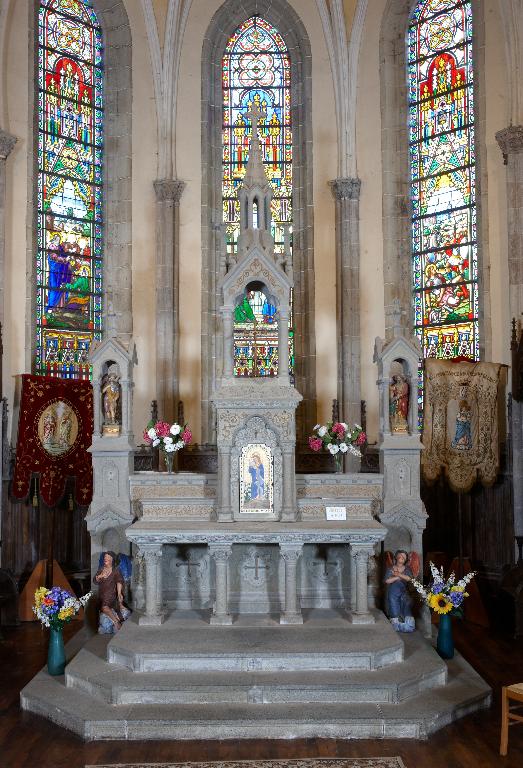 L'intégralité des vitraux datent de la construction de l'église au 3e quart du 19e siècle, même si les vitraux du transept furent restaurés dans les années 1920. Ils proviennent de la fabrique de François Fialeix, maître-verrier, à Mayet dans la Sarthe.