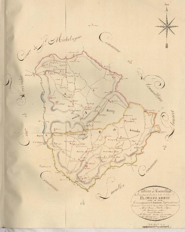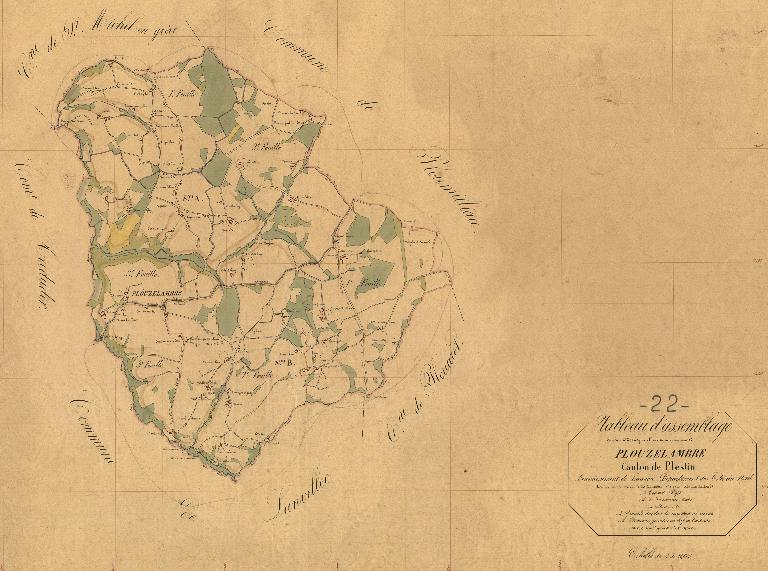 Un premier cadastre a été établi en 1814 pour la commune de Plouzélambre. Il est composé d'un tableau d'assemblage et de 4 feuilles (2 sections). Le cadastre réalisé en 1848 comporte également 2 sections : section A dite du Bourg en 3 feuilles) et section B dite de Keroudok en 3 feuilles. Si la population à cette époque est de 802 habitants (1851), le cadastre permet de dénombrer 173 maisons ou constructions diverses (OGEE, MARTEVILLE, VARIN, réédition de 1853 ; JOLLIVET, 1859).