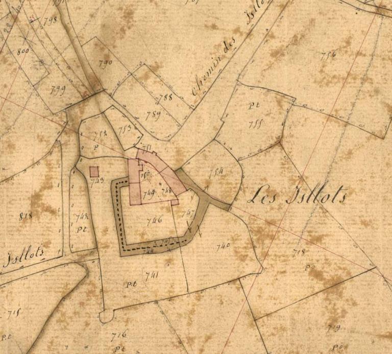 Sur le cadastre napoléonien de 1844, les Ilots présente la même disposition : deux alignements de deux et trois corps de bâtiments formant un V, l'ensemble étant entouré de douves. Depuis 1844, aucun bâtiment n'a été ajouté. Le site possède de nombreux éléments architecturaux intéressants et il serait nécessaire de poursuivre l'étude par des recherches en archives plus poussées.