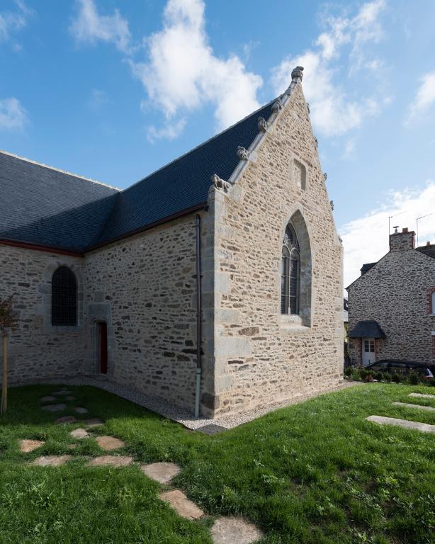 Les rampants du pignon très ornés de la chapelle sud, feuilles retournées, petits personnages dénudés, animaux sont attribuables à une autre campagne datable de la première moitié du 16e siècle. Ils se réfèrent aux décors des gables de la chapelle saint Guen à saint Tugdual (56) datés de 1540.