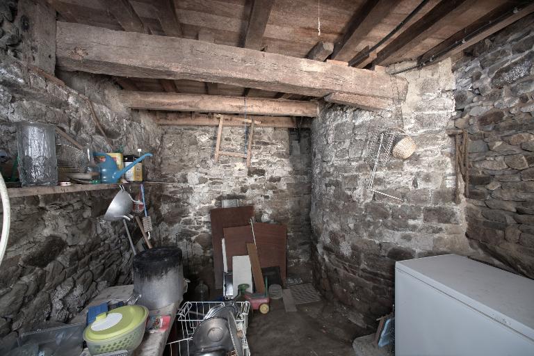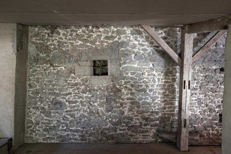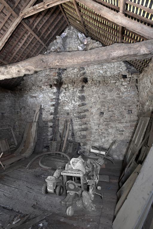 L'un des logis du 17e siècle a été peu transformé et rend compte de dispositions intérieures authentiques.Les souches de cheminées l'une double, l'autre simple présage de la présence de trois cheminées intérieures, dont deux sont encore en place, et l'une partiellement. Le fait de disposer de pièces chauffées à l'étage suffit à distinguer ce logis des maisons rurales courantes, dont seule la salle en rez-de- chaussée était munie d'une grande cheminée.