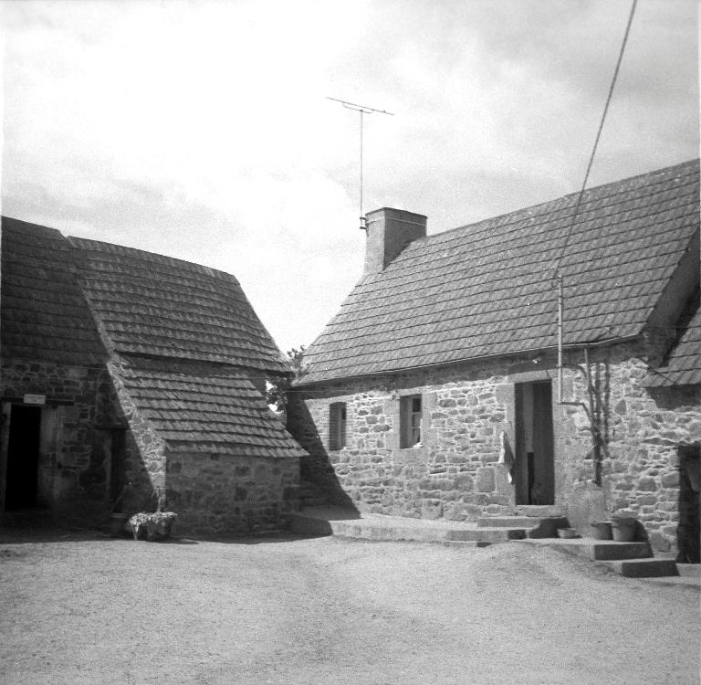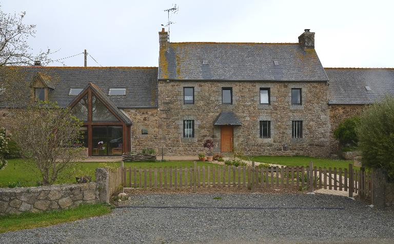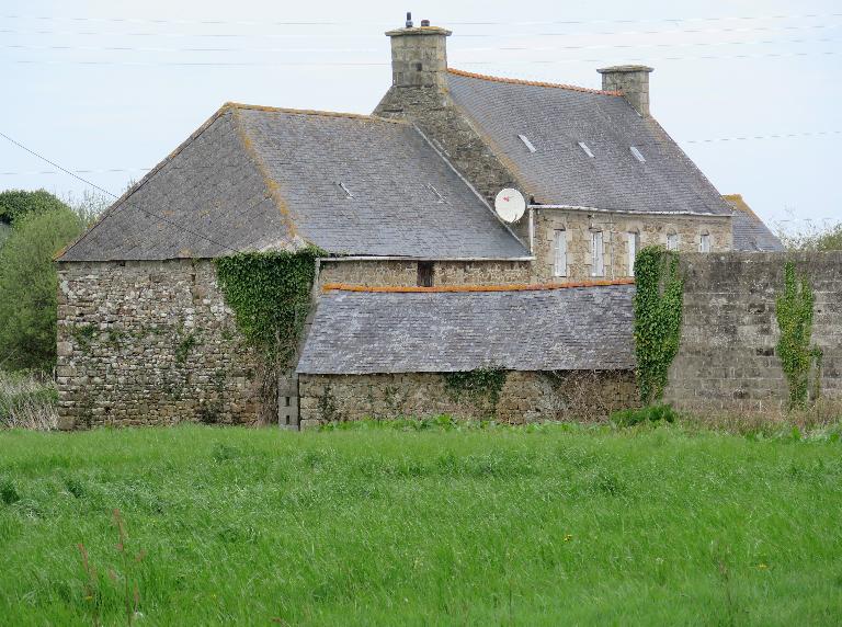 - la protection contre les vents dominants d’ouest (pluvieux) et du nord (froids) grâce au relief. Souvent implantés à mi-pente, les bâtiments d’habitation tournent ainsi le dos au vent ; les fenêtres sont uniquement percées dans la façade sud. Autour des hameaux, le bocage permet d’atténuer l’effet du vent. Dans le Trégor, les logis de ferme sont le plus souvent orientés vers le sud-sud-est ou le sud-est.