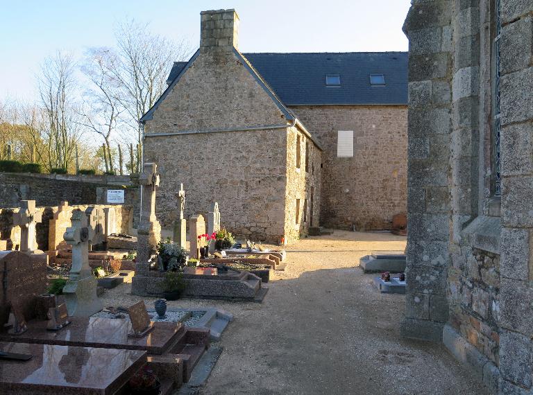 Vers le nord, aile postérieure ancienne abritant un logis orienté vers l'ouest : il s'agit de l'ancien presbytère qui a conservé ses ouvertures d'origine.