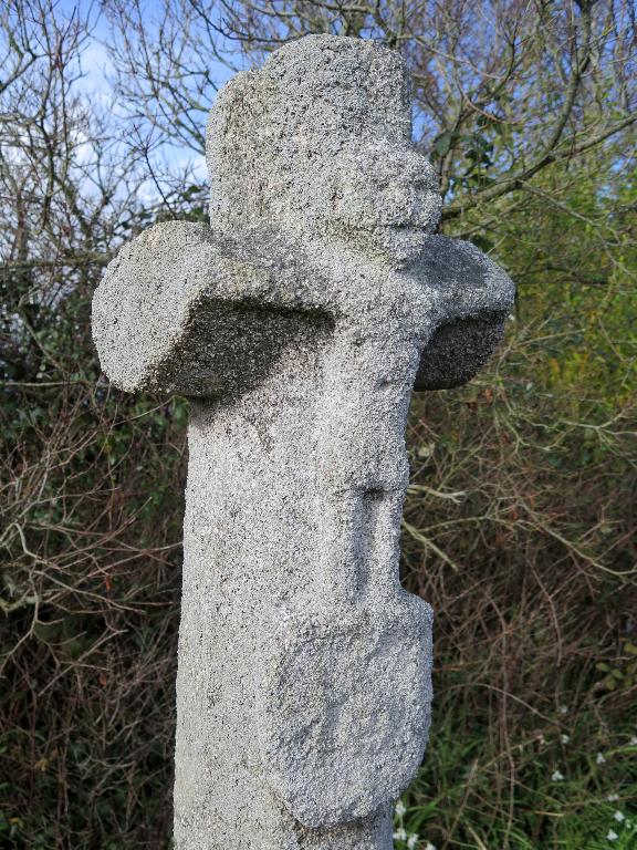 Croix de chemin armoriée vraisemblablement datable de la 2e moitié du 15e siècle ou de la 1ère moitié du 16e siècle.