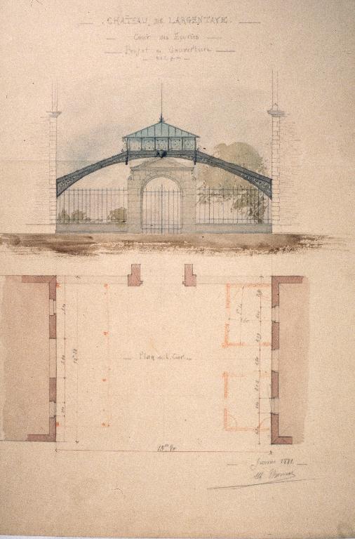 La basse-cour du château de Largentaye qui n'est plus exploitée aujourd'hui est construite à partir de 1842 selon les plans de l'architecte Hamon. Ces bâtiments s'apparentent aux "fermes-modèles" du 19e s. En 1881, l'architecte de la chapelle, M. Thomas un projet de verrière métallique pour couvrir cette cour, projet qui ne