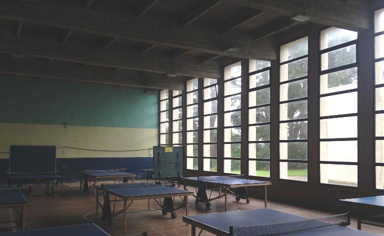 Ce gymnase présente l'originalité d'être intégré dans le bâtiment des ateliers du collège.