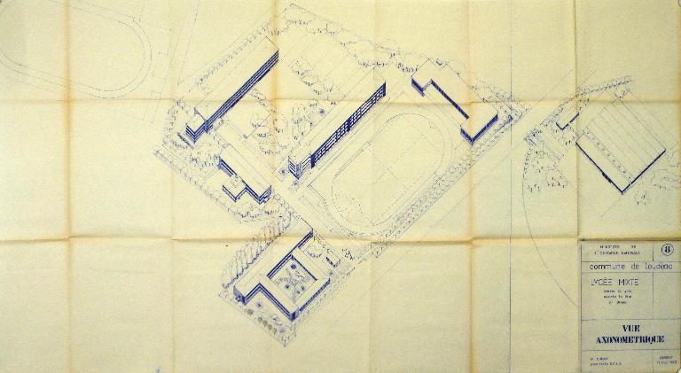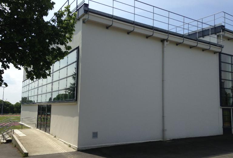 Bel exemple d'équipement sportif scolaire de la fin des années 1960, associant gymnases et piscine.