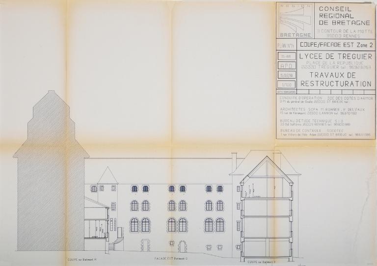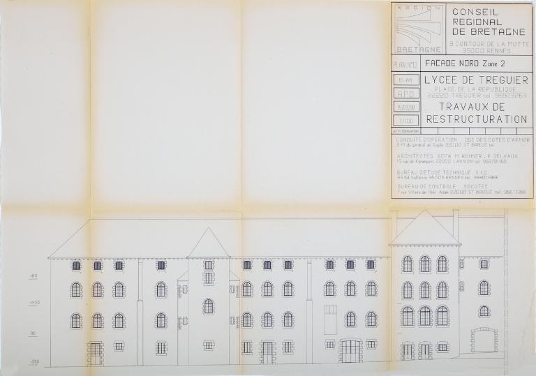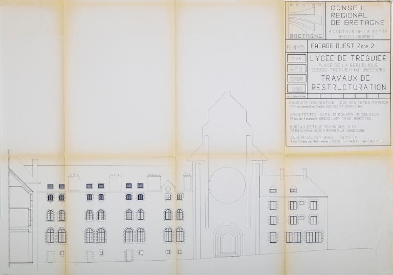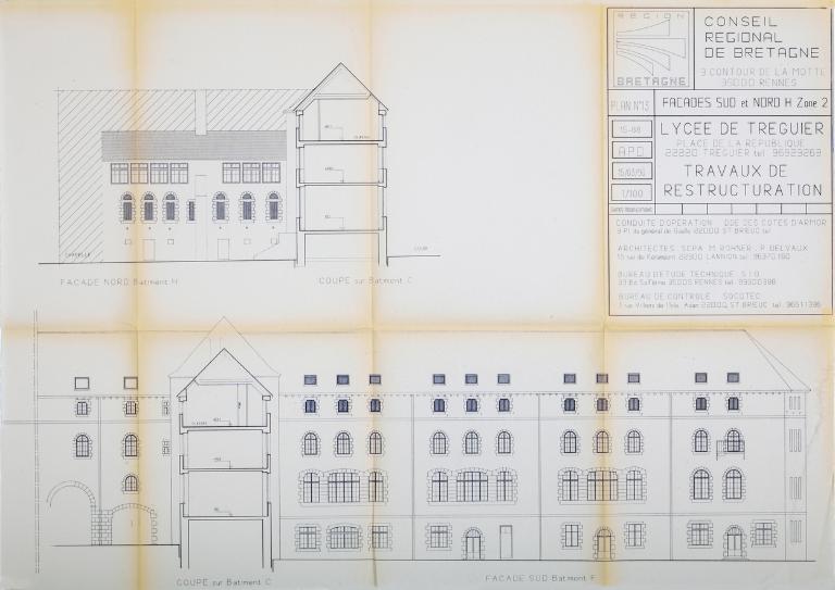 Le supérieur du petit séminaire Duchêne a écrit à l’évêque de Saint-Brieuc et de Tréguier le 28 mai 1895 le courrier suivant co-signé du secrétaire, de l’économe et du trésorier : "La démolition du pavillon central à l’effet d’établir la façade d’entrée de la nouvelle chapelle sur la grande cour nous a révélé l’état des autres édifices de même époque bâtis suivant le même mode de construction et n’a que trop confirmé nos craintes, au sujet de la solidité d’une grande partie de notre maison. […] Nous avons encore à craindre que d’autres bâtiments qui sont plus menacés de ruine que ne l’était le pavillon démoli, ne viennent à céder tout à coup, malgré les étais qui les appuient. […] Nous avons donc fait examiner l’état de nos constructions par notre architecte, le priant de consigner les résultats de son examen dans son rapport […]. Il en résulte que le petit séminaire de Tréguier se compose de deux groupes d’édifices d’apparence et de constructions différentes. D’abord, l’ancien Grand séminaire datant de 1654, puis le développement récent qui date d’une trentaine d’année. […] Le groupe des édifices les plus récents est l’objet de notre principale préoccupation. Nous n’avons pas cru devoir continuer à loger nos élèves dans l’un d’entre eux, sans l’étayer à l’intérieur et à l’extérieur du haut en bas. [...] On se demande peut-être comment on a pu bâtir dans d’aussi mauvaises conditions. […] Quoi qu’il en soit, nous croyons que la reconstruction d’une partie du petit séminaire s’impose, et nous avons étudié cette grande question avec la double pensée de répondre à la nécessité présente par un aménagement qui fournira aux élèves et aux maîtres un logement convenable qui leur manque et de préparer l’avenir par l’établissement d’une ligne générale et d’un plan uniforme du futur petit séminaire. Nous avons demandé à notre architecte de préparer des plans, à la fois simples et bien conditionnés, et de nous dire le chiffre minimum pour une construction d’une aile nouvelle et la réfection de deux édifices adjacents qui se raccorderaient avec la nouvelle chapelle et constitueraient à peu près la moitié de l’établissement total. Il nous a répondu que ce travail entrainerait une dépense d’au moins 160 000 francs. Si nous ajoutons à cette somme, celle du remaniement de l’ancien grand séminaire et les imprévus, bien au-dessus de notre budget ordinaire que nécessiteront des changements de services, nous arrivons à un total de 200 000 francs" (Archives diocésaines de Saint-Brieuc, document aimablement communiqué par Michel Le Cam).