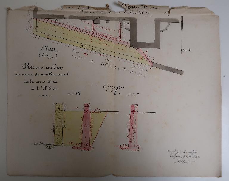 En 1920, le mur de soutènement nord est reconstruit au croisement de la rue du Collège et de la rue des Perdreries (Perderies) pour donner plus de largeur à la rue. L’année suivante, les dépendances (buanderie - lingerie ; grange et étable) de l’école primaire supérieure de garçons (ex petit séminaire) sont transformées en logements sociaux (Archives communales de Tréguier, 3M2, carton n° 83). C’est sur les terrains du petit séminaire de Tréguier que sont construits les quatre immeubles à logements dits "maisons ouvrières" en 1932-1933 sur des plans de Adolphe Le Gouëllec, architecte de Saint-Brieuc (Archives communales de Tréguier, 1W5).