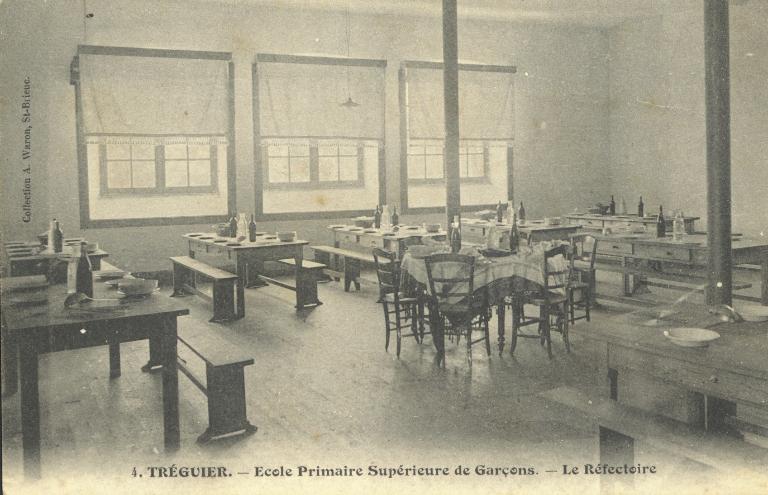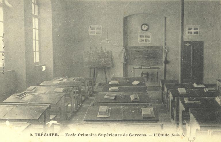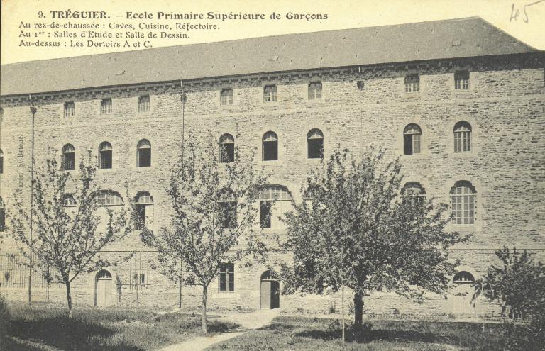 Le Petit Séminaire est transformé en école primaire supérieure de garçons en 1908 (établissement d’Enseignement Primaire Supérieur de 1908 à 1941). Les deux sacristies de la chapelle sont transformées en salle de lecture et de réunion pour les professeurs tandis que l’appartement de l’évêque est attribué comme logement de fonction à un "professeur marié". Le directeur dispose d’un appartement de cinq pièces. Un plan général conservé aux Archives communales de Tréguier nous renseigne sur l’organisation et le fonctionnement de l’école en 1908 (4M2, carton n° 77). Après la loi de Séparation des Églises et de l’État, la chapelle du petit séminaire abrite un atelier de menuiserie et de travail des métaux puis une salle de sport. La durée des études est fixée à trois ans : soixante-douze élèves (dont 50 internes) font leur rentrée des classes en octobre 1908 sous la direction de monsieur Lacroix.