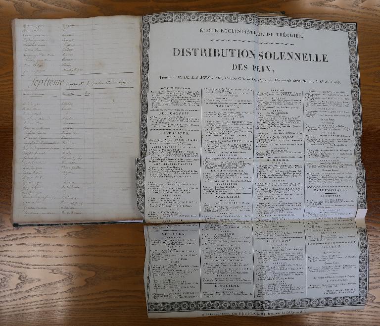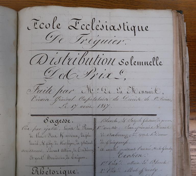 Jean-Marie de La Mennais de son vrai nom Robert (1780-1860), alors vicaire général de Saint-Brieuc obtient le droit de créer une seconde "école ecclésiastique" dans le département des Côtes-du-Nord pour la formation des futurs prêtres (ordonnance du roi du 24 janvier 1816). Il s’agit d’une école de niveau secondaire (collège, lycée) qui forme à la fois des élèves à vocation laïc et de futurs séminaristes (ces derniers intégrant ensuite le "grand séminaire". Après la Révolution, on note une raréfaction des prêtres d’extraction noble au profit des familles moyennes de paysans.