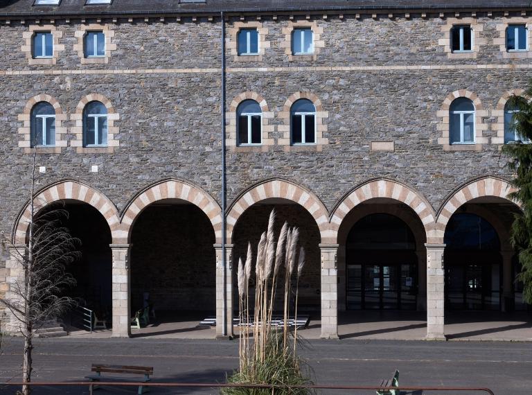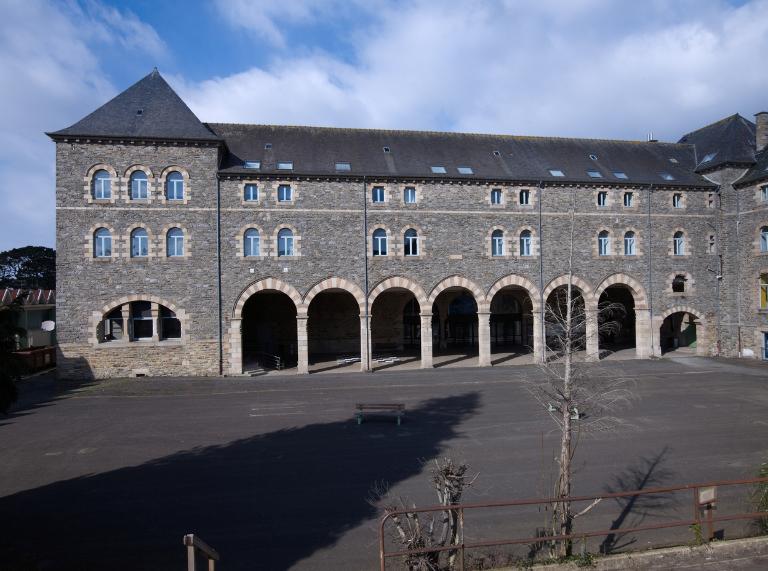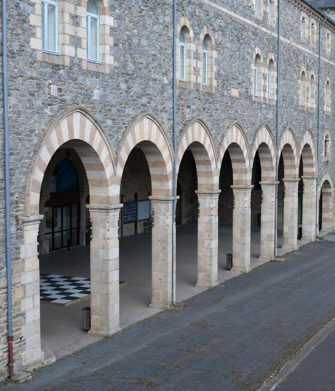 Ce nouveau bâtiment scolaire est avant tout fonctionnel et moderne : "des classes, des études, des dortoirs, salle de conférence, préau couvert, water-closets, escaliers, couloirs : le tout largement éclairé […]". Au-dessus des arcades du préau, on peut lire le millésime 1897 et une dédicace à monseigneur Pierre-Marie Fallières en tant que "promoteur généreux" des constructions nouvelles. L’évêque dispose également d’un appartement situé immédiatement au nord de la chapelle.