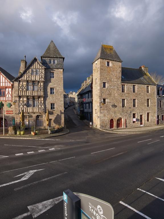 Décrits en 1575, les trois quais du port de Tréguier - d’une longueur total de 215 m – sont remarquables pour l’époque. "Un des plus beaux quais dudit pays en forme de ravelin de largeur de 80 pieds ou environ [24,5 m] et de longueur de 250 pas [82,5 m] qui va donner du bout en flanc dans la rivière et bras de mer qui aborde au-devant d’icelle ville, garni et ceint de pièces de bois fichées en terre de la hauteur et jusqu’au sommet d’icelui, afin de gariller [?] que les dites pierres de taille dont ledit quai est garni et rempli de terre ne se puisse démolir avec deux autres quais à chacun côté d’icelui quai du bout devers la terre qui contiennent de longueur 400 pas [132 m], tous deux bâtis de pierre de taille, si bien accommodés que lorsque la mer vient à monter à chacune marée, les navires peuvent aisément décharger (texte cité par Jean-Pierre Leguay dans son ouvrage intitulé L’eau et la ville au Moyen Age).