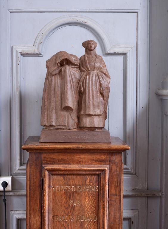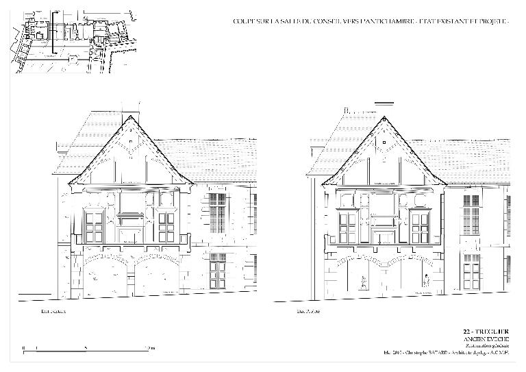 Le décor en grisaille façon 19e siècle était toujours d’actualité en cette période de début de siècle. L’intérêt du décor de cette grande salle de réception demeure dans les valeurs et la fierté d’un après guerre. La reconnaissance de Tréguier aux enfants de Bretagne devenus de prestigieux personnages historiques est ici louée en les immortalisant nommément sur les boiseries. Ils sont inscrits sur les boiseries à la bronzine et non à l’or :
