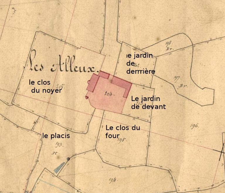 Le cadastre de 1844 donne une idée de l’environnement du bâti à cette période (voir annexe 1) . Logis orienté au sud avec tourelle d’escalier demi-hors-œuvre au nord. Gros œuvre en moellons et porte et fenêtre en pierre de taille de granite. Les décors sculptés ont été arasés, et le blason au-dessus de la porte n’est plus lisible.