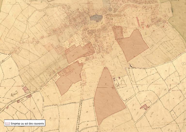 Au milieu du 18e siècle, Tréguier se trouve ainsi enserrée par une couronne d'établissements religieux - couvents de femmes, séminaire, hôpital général, hôtel-Dieu - qui modifient profondément le paysage urbain. Leur emprise foncière est considérable puisqu'ils occupent la moitié de la cité. Outre les imposants bâtiments conventuels et leurs dépendances, les surfaces non bâties - parterres et jardins - forment des îlots de verdure dérobés à la vue. Ces vastes "pourpris" clos abritent une activité horticole dont la dimension productive ressort fortement dans les inventaires réalisés à la Révolution.