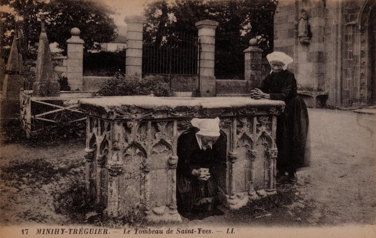 Le récit du curé de la cathédrale de Tréguier au début du 19e siècle qui relate le déroulement de la fête de saint Yves, rapporté par Georges Provost dans son article consacré au rituel du pardon publié dans l’ouvrage collectif consacré au saint en 2004 confirme l’existence et l’usage affecté tout spécialement à cette occasion à l’oratoire du cimetière de Minihy-Tréguier. En revanche et curieusement le récit du prêtre ne mentionne pas le rituel du passage sous le tombeau...