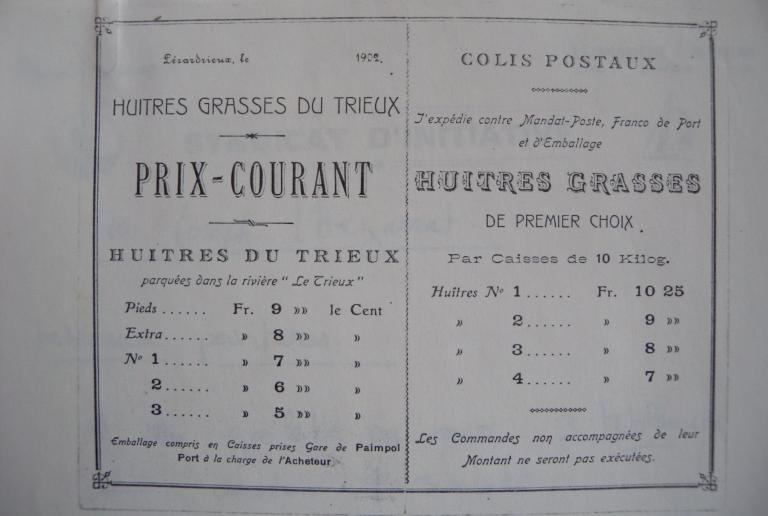 "L’huîtrière de Toul an Houillet donne des huîtres à peu près d’égales dimensions mais qui restent beaucoup en-dessous de la grandeur de celles qui se consomment à Paris sous la dénomination de marchandes, les meilleures n’entrent dans la consommation de la capitale que comme bonnes moyennes, transportées dans des parcs qui ne sont alimentés que par eau de mer vive, elles ont généralement vite dépéri, ce qui fait croire qu’un mélange d’eau douce serait nécessaire à leur espèce".