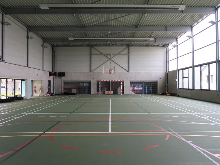 La salle des sports s'intègre dans un ensemble de bâtiments municipaux comprenant en outre un groupe scolaire (2 classes maternelles et 4 classes primaires) avec cuisine et restaurant scolaire, un centre de loisirs sans hébergement et une salle polyvalente.