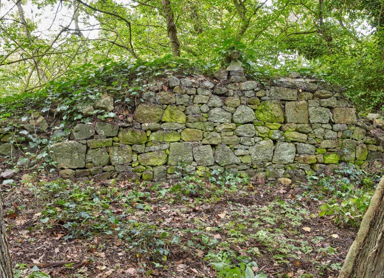 - sur la pente à l’Est, une porte piétonne est située dans l’éperon du mur de clôture.
