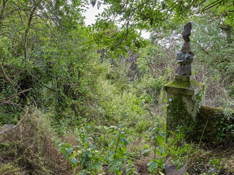 - au Sud du domaine, est localisé un grand portail accessible par un chemin depuis la rue du Commandant Le Conniat. Flanquée de deux piliers en ciment, cette porte charretière donne directement devant les communs et dépendances du domaine qui abritaient une remise pour les voitures hippomobiles et automobiles.