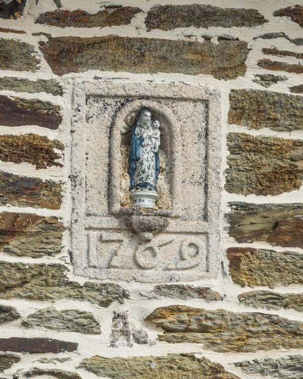 La maison est orientée ouest, précédée d'une cour fermée au sud par le mur d'enclos du presbytère. Elle est construite en moellon de schiste avec des encadrements de baies en pierre de taille de granite. Le corps principal présente une façade à élévation ordonnancée, à trois travées. Il est prolongé au sud par un corps secondaire plus bas, à usage de cuisine. L'entrée ouvre sur un vestibule central qui abrite l'escalier tournant à retours en bois, construit entre le mur de refend et une cloison en menuiserie. L'appentis à étage accolé au mur arrière de la maison est accessible depuis le rez-de-chaussée et l'étage. Le corps secondaire au sud, de plan massé, comporte une entrée indépendante et un escalier droit plaqué contre sa façade pour accéder au jardin situé en contre-haut.