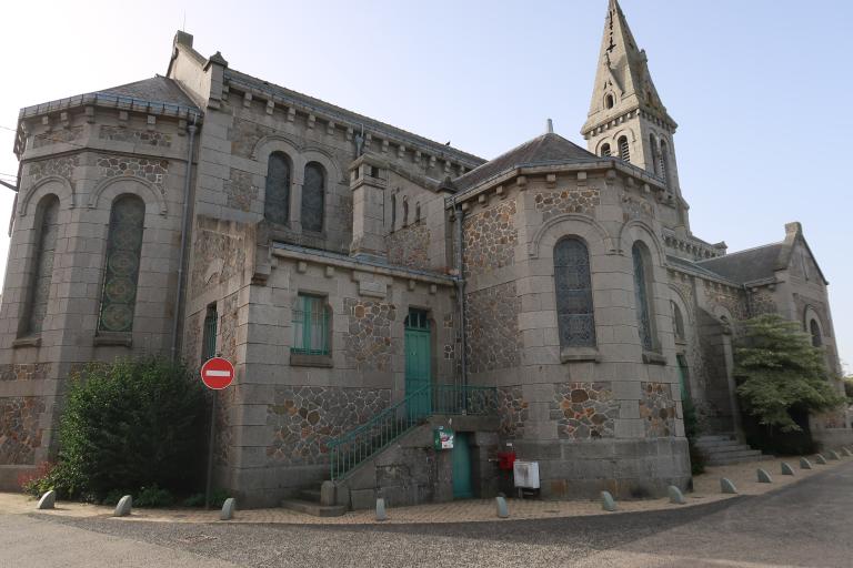 Les deux sacristies sont situées dans les angles formés par le chœur et les chapelles latérales. On accède à la sacristie ouest par un escalier extérieur.