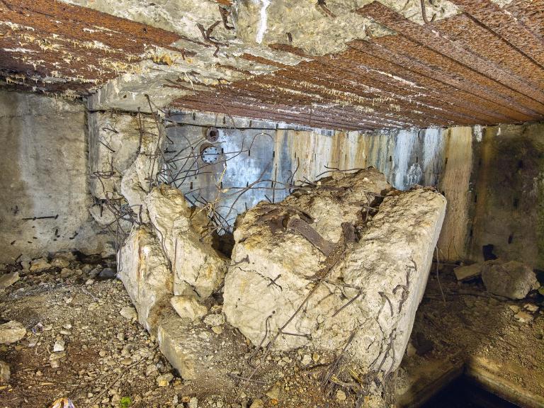Les trois bunkers permanents - un abri et deux casemates abritant des canons - présentent des traces d’explosion interne plus ou moins fortes. Des munitions ont été rassemblées dans le sas de l’abri et ont été mises à feu entraînant une très violente explosion (bunker – abri de type 502). Les canons des casemates (disparus) semblent avoir été sabordés par explosion.