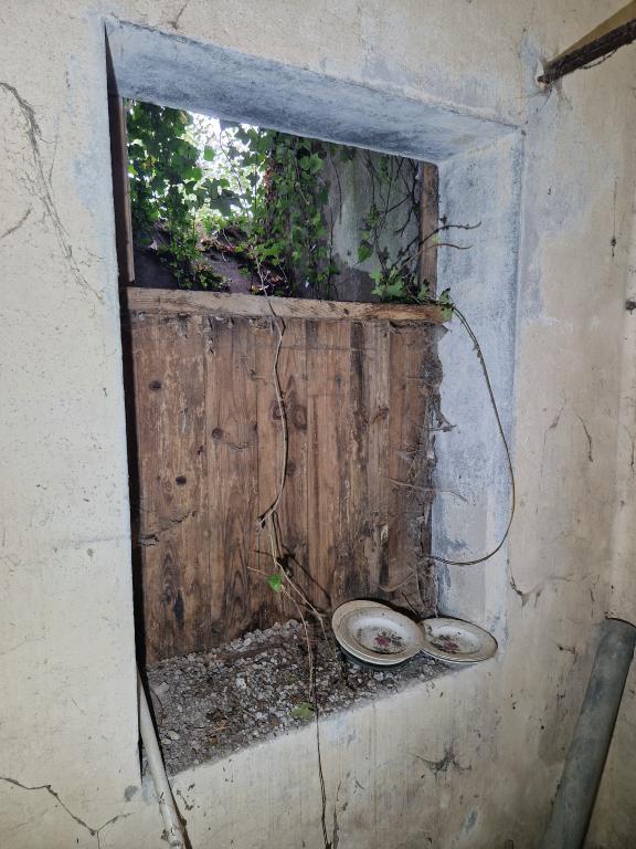 - le sol est en ciment (facile à laver). Une partie a été arasée dans la pièce ouest (?).