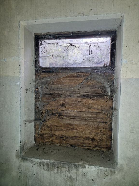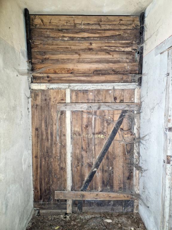 L’édifice a ensuite servi de remise. Les vitres des fenêtres ont été partiellement masquées par des voliges.