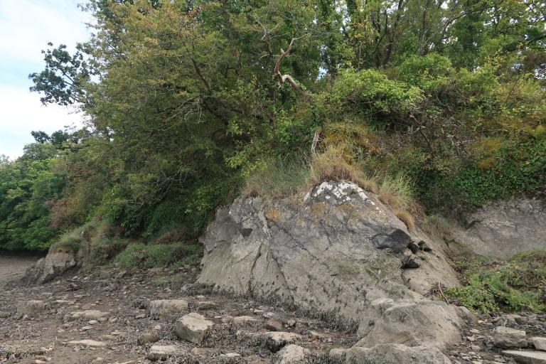 Du côté du Trieux, la partie sud-ouest se distingue par sa pente importante. Sa forme quadrangulaire, bien différente des deux autres enceintes qui se limitent aux contours du rocher, laisse penser qu’il s’agit d’une extension postérieure à la première enceinte. Erwan Chartier fait remarquer que les six pièces d’artillerie en place dans le château en 1399 devait servir à contrôler et dissuader le passage des navires. Cette plate-forme - pour une batterie d’artillerie ? - pourrait peut-être coïncider avec cette fonction défensive.
