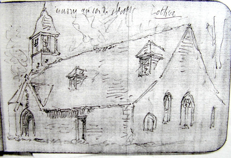 La flèche carrée servant de chambre de cloche est couverte d'un toit en pavillon. Nef et porche sud couverts de toits à longs pans.