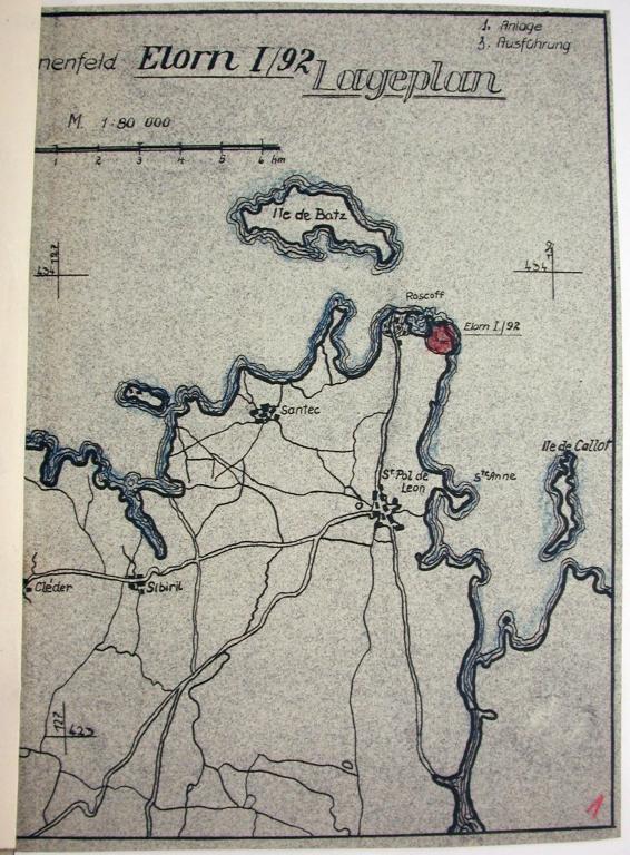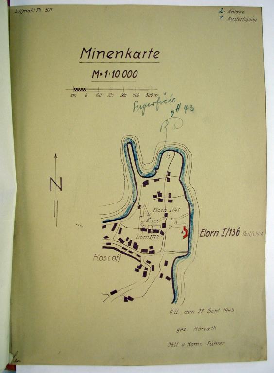 - champ de mines Elorn I/92 divisée en deux sections A et B posé le 20 juillet 1943 (3./Pi./Btl. 371 : 42294D)