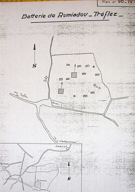 La batterie d’artillerie de Rumadiou à Tréflez a été construite par l’Allemagne nazie durant la Seconde Guerre mondiale. Sur le site sont conservés deux bunkers-casemates frontales de type 669 pour canon de campagne de 7,62 cm de calibre de fabrication soviétique. L’intérêt de ces bunkers est également de conserver des marquages et des instructions de tir en bon état.